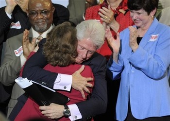 I got a bit creeped out when I saw this photo. A right wing Democrat was being groped by a right wing Democrat – consensual incest. Later they will break out the cigars and celebrate Blanche Lincoln’s return to right wing politics after her brief and mandatory flirtation with progressivism during the primary challenge.