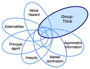 2) We often don’t know the outcome of our economic transactions for years, sometimes decades. Yet we need to be paid in the present to survive. So, as another thought experiment, imagine bankers from a place called “Wall Street” create elaborate financial instruments, free of government oversight. Because these instruments appear to be immediately profitable, they pay themselves huge rewards for that profitability. Later, when the instruments prove defective (in fact, destructive and harmful), these same bankers refuse to repay their bonuses. Is that not market failure?