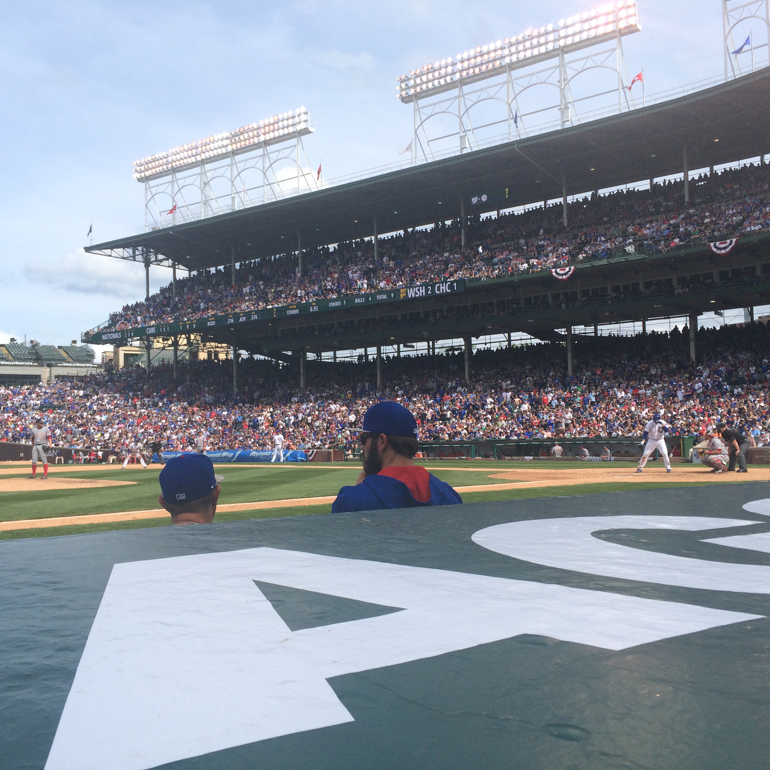 My wife’s son works for a company that has four season tickets directly behind the third base dugout at Wrigley Field. Yesterday we got to use them. It is as close as I have ever been to a major league game. Interesting too that the people around us seemed like everyday people, no one rich and famous. Those folks are probably behind the glass walls high up above.