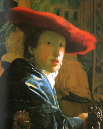 The picture is not a success by Vermeer’s standards and he tries again, this time utilizing the soft focus effects of the system in Girl Wearing a Red Hat by having Catherine look back over her shoulder. This is an interesting pose that will return in the fabled Girl With a Pearl Earring. Aesthetically speaking, The Red Hat is an improvement and we can’t really know what the standards of the time were regarding female vanity- but, as I mentioned, she did marry him and whelp 15 kids.