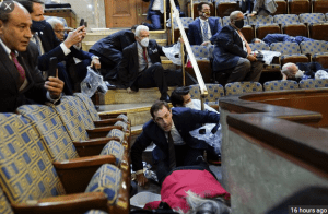 11. The saddest thing to notice in these pictures…is US people’s representatives ducking under the bench as their people are entering the building. Why duck, dear beloved politicians? What’s there to hide from? Did Norwegian forrest trolls just storm Congress and ate someone’s head in front of them, so they all ducked as the troll didn’t yet feed his apetite ? So sad, really. Instead of seeing real American values on display, we see cowardice, fear and lust for saving their own lives as if they matter. They all need to resign asap, despite this whole incident being a scripted TV drama, a director’s cut of semi-recent false flag from abroad. Which true American man or woman wants to be represented by a coward that goes ducking instead of fighting? Is that the kind of man or woman any sane American wants to accept as their representative? If so, which part of their act should we feel excited or inspired about? It’s really nauseating to watch any of this.