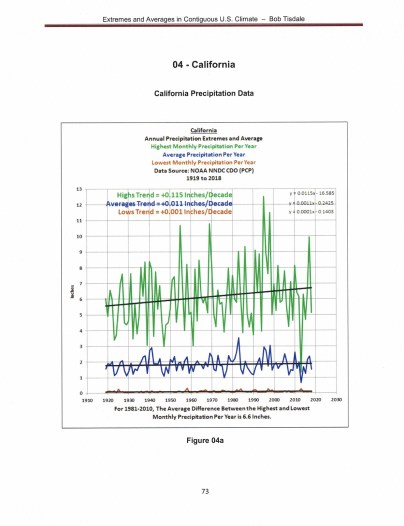 That’s a 100 year record of precipitation in California. Follow the blue line, see how erratic it is. The distance between blue points and the black liine is called climate variability. We do not have to manufacture such volatility. What Tilden has done is to reduce that volatility to one straight black line.