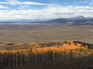 We’ve been out and about, my wife seeing to it that I get out every other day or so, even if only to go to the store. The leaves are turning in Colorado, aspen anyway, and it is gorgeous. Within Denver proper over time people have planted maple trees, which turn red. While the countryside is a yellow-orange feast amidst the conifers, Denver is yellow, orange, and bright red. West of us on highway 285, perhaps forty miles out, is Kenosha Pass, and there, right above South Park (a huge expanse of meadows as far as can be seen) is aspens. People from the city below travel up there on weekends just to view the colors, so we who live up here (and are retired and so can use weekdays) know to avoid 285, as the traffic is like LA during commutes.