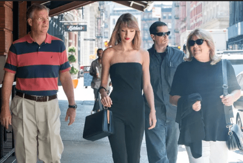 Taylor Swift appears to have been pasted into the above photograph with her alleged parents and bodyguard(?) .. Even the shading and tones on her body is slightly off in comparison to everyone else surrounding her.