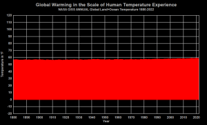 If you are sharp of eyesight, you will note a slight uptick in planet temperature from 1880 to 2020. There is a word for this change from 57 degrees to 59 degrees over that 140 year period: Imperceptible. The human body cannot distinguish such slight temperature anomalies.