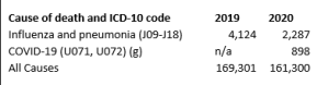 - Low mortality in Australia: According to the Australian Bureau of Statistics, covid was the 38th leading cause of death in 2020 but is nevertheless shown at the bottom of the Top 20 causes of death table. According to the statistics, in 2019 flu and pneumonia caused more than four times the number of deaths of covid and yet no enforced measures were taken and nor did we hear about the number of cases or mortality in the media in any memorable way.