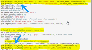 Below is a portion of what is called Python script of CERES data, which is used by IPCC authors to plot the total outer atmosphere (TOA) of reflected shortwave, emitted longwave, and net fluxes from both CERES observations and climate model projections. That’s a mouthful. (It is important to understand here that actual CERES data, sans the minus signs, is available via AR6, and that NZ were able to work with it. It is AR6 Chapter 7.2.2 that wildly misconstrues it.)