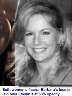 2. The pictures are lo res and have strange value changes suggesting image manipulation. The mouths look almost identical, to the point that one may have been pasted into the other pic. Zoom in on Evelyn’s eyes – they are level, but her head is tilted. People have some natural asymmetry (or vax damage asymmetry lol) but if you saw this much in real life she would appear hideously deformed. Unless she walked around with her head at a permanent tilt and kept at a distance, I guess.