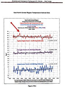 These are temperature records for (in order) the East North Central Region, the Central Region, and the West North Central Region of the lower 48 United States. Note the following: