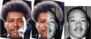 Keep in mind that we are looking at a young Martin Luther King, Jr. (L), who supposedly died at age 39, and an older Don King, not sure of his age. There is, however, a basis for comparison.