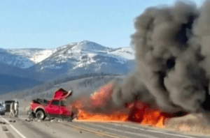 Out of respect for sensibilities, I ask only the curious to go to the NBC website that reports on this crash, near Henry’s Lake in Idaho, and 20 miles away from Yellowstone National Park. Seven died, eight were injured, and no doubt burn units all over Idaho and Wyoming are on call and extremely busy. (Note, the caption to the photo says that the accident happened in Idaho near Henry’s Fork, east of Yellowstone. Geographically, it can only be west.)