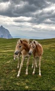 The picture to the side here was an iPhone snapshot taken by my wife last year in the Italian Dolomites. The horses are known as Haflingers. They are smaller than average, and so used for light tasks like pulling buggies or chariots. They are known to have sweet dispositions, and so make great pets.