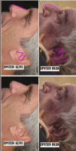 Below the fold you will find a comparison of the “corpse” of Jeffrey Epstein with the living man. I got the work from a website called Hidden Crypt, which I know nothing about. I did not see any copyright on the images produced, but if the originator complains, I’ll take them down. In the article there are references to “deep state” and the Clintons, and suggestions that Epstein was surreptitiously killed rather than the obvious take, that the death was faked (with full complicity of authorities at all levels).