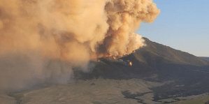 The above is a photo of the ongoing Robertson Draw fire, located in Montana near the Wyoming border, on the east face of the Beartooth Mountains. The map quadrant is known as “Mt. Maurice,” and I assume that to be Mount Maurice itself.
