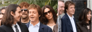 In case you don’t yet see it, that is Paul on the left, next to Dhani, and Mike on the right. They are dressed alike, and each sporting an identical hair piece. It can be no other way.