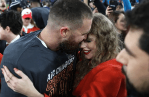 But first, Travis Kelce and Taylor Swift. I am not buying it. I chose the photo above because something about it says to me that it is lacking electricity. He is about to kiss the bridge of her nose, and she appears to be holding her head in such a way as to avoid making facial contact. They are in public, there’s lots of photos, and in some they are kissing. I could be all wet here, they could be hot and sweaty lovers. But with her showing up at all of his home games, and cameras flipping to her in the booth every time he does something good on the field, there seems to be an element of staging. (Just to stifle rumors otherwise, her long extended wrist and fingers say she is a woman, and not a tranny. She has a male-like face, but no Adam’s Apple.)
