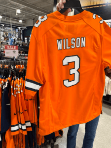 Above is a photo from last weekend at Dick’s Sporting Goods in Denver. As we walked in there was a display rack that must have had 300 jerseys on it, each with the number 3 and the name Wilson on it. For those who don’t follow football, the Denver Broncos signed Wilson two years ago to a monster deal that was supposed to last five years. He did not work out, and the Broncos just recently released him, taking a huge pay hit (cap ceiling, if your follow football). Some notes: