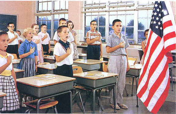 But to actively manage a population that thinks itself free is a much more difficult task. So it starts early, when we are very young. Our schools teach us a version of history that probably never happened, and it becomes our backdrop. We are also taught that our form of governance is the best, and that we had forebears that were saintly and courageous. We are constantly put through rituals, such as saying the Pledge of Allegiance and singing the national anthem, to reinforce those ideas. We monitor one another to see if the open displays of patriotism are appropriate – do our neighbors take off their caps, put hand over heart?